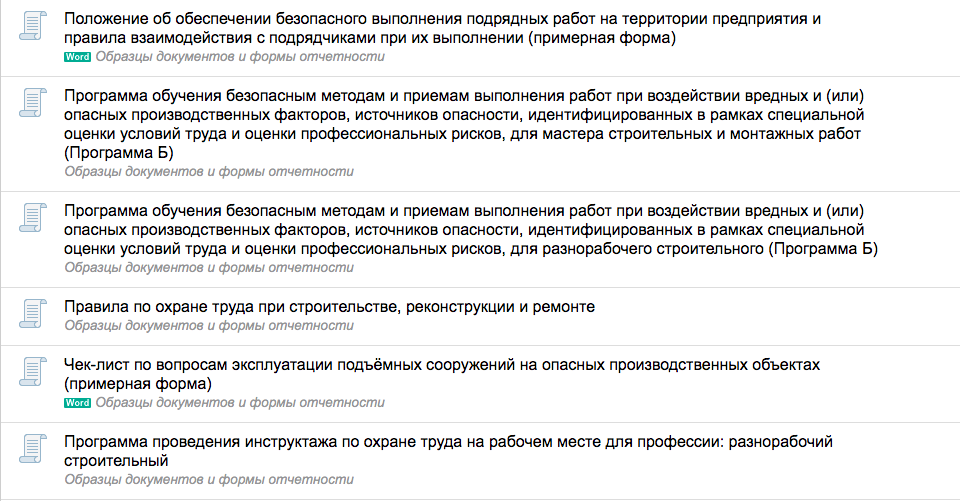 Для сотрудников стройплощадок необходимо разработать следующие документы по охране труда: