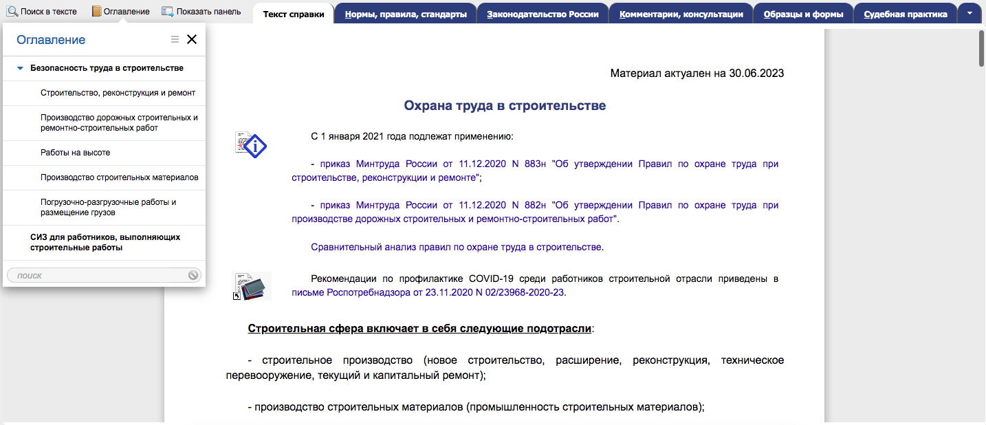Воспользуйтесь справочным материалом в системе «Охрана труда». Эксперты разработали понятную, короткую справку по актуальным требованиям законодательства и ежедневно обновляют информацию. В справке вы найдете информацию о том: