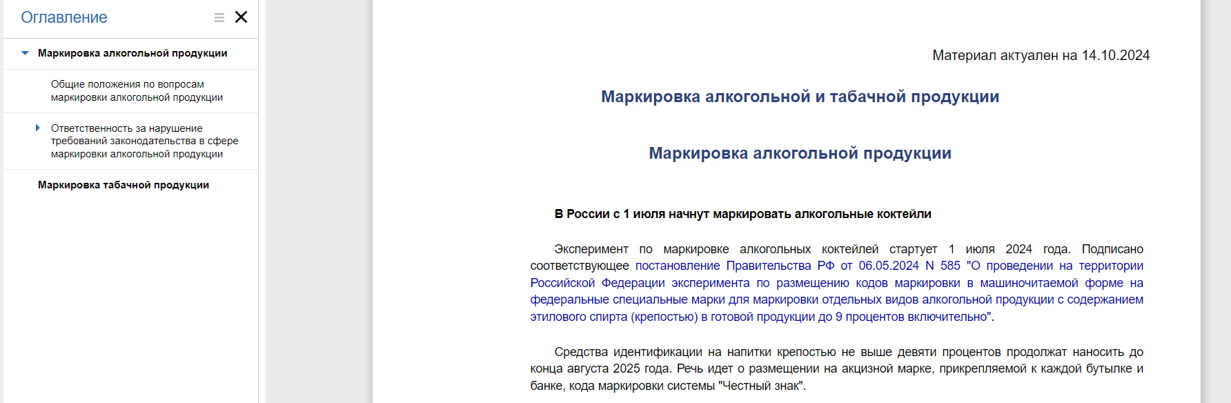 Для этого в комплекте справочных систем «Техэксперт: Пищевая промышленность» создан материал «Маркировка алкогольной и табачной продукции». Он содержит общие положения
