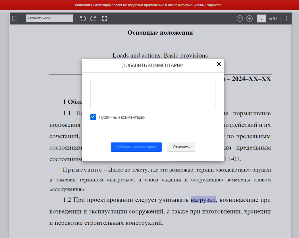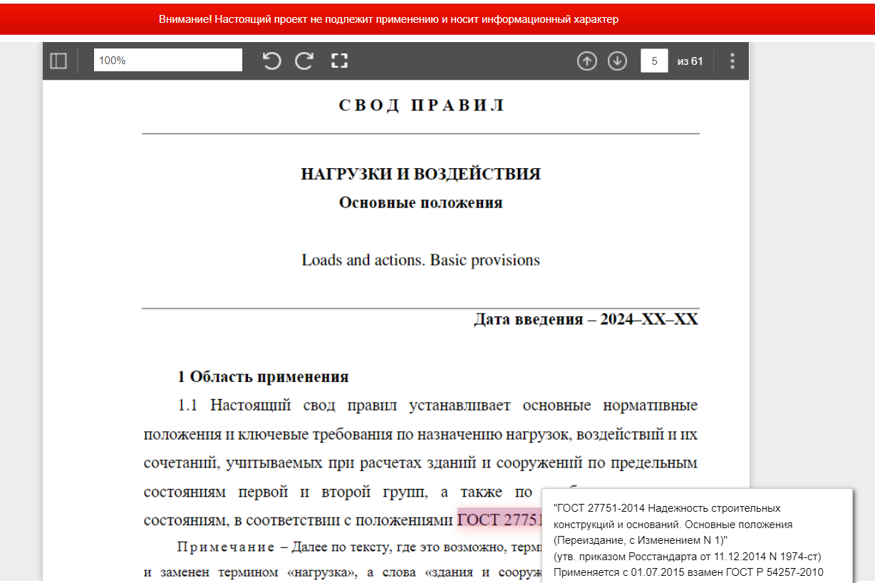 Сейчас проходит этап публичного обсуждения проекта, и для удобства изучения документа мы открываем доступ к проекту СП в системе «Помощник проектировщика». Функционал системы позволяет оставлять комментарии по тексту и направлять их коллегам для предварительного обсуждения.