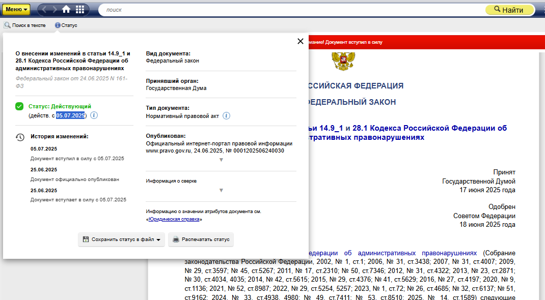 Изменения внесли в статьи 14.9.1 и 28.1 Кодекса РФ об административных правонарушениях.