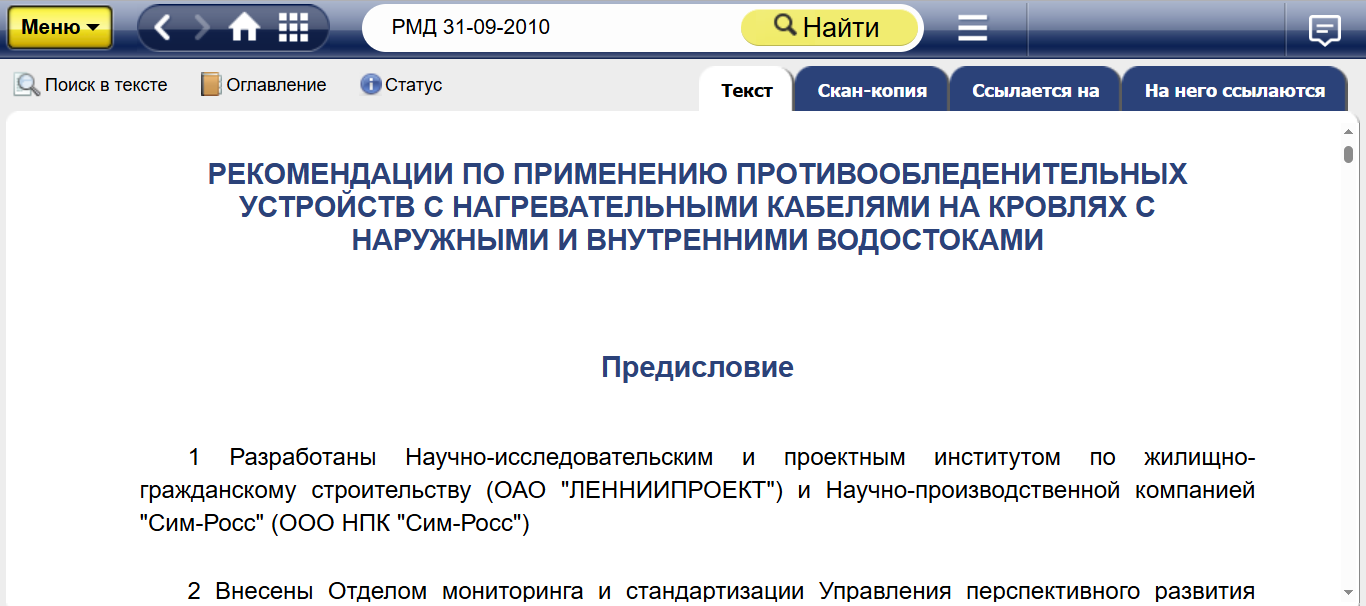 РМД 31-09-2010 Санкт-Петербург «Рекомендации по применению противообледенительных устройств с нагревательными кабелями на кровлях с наружными и внутренними водостоками»