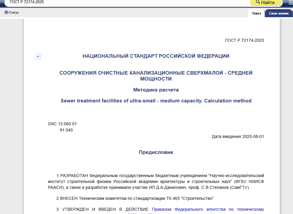 ГОСТ Р 72174-2025 — требования к проектированию и расчету очистных сооружений