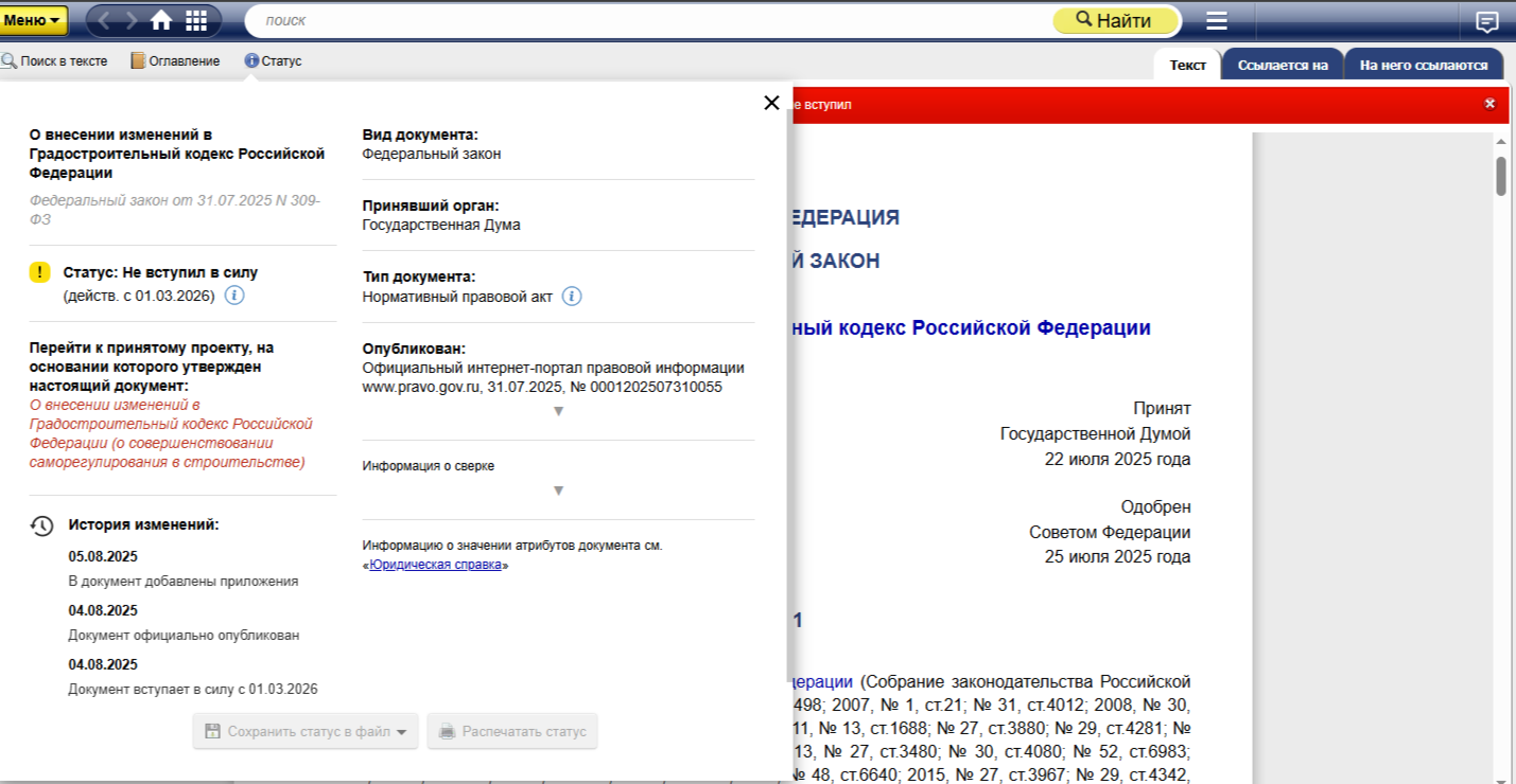В настоящий момент Федеральный закон от 31 июля 2025 года № 309-ФЗ принят и подписан, однако вступит в силу с 1 марта 2026 года. Вы можете поставить документ на контроль, и система сама проинформирует об изменениях.
